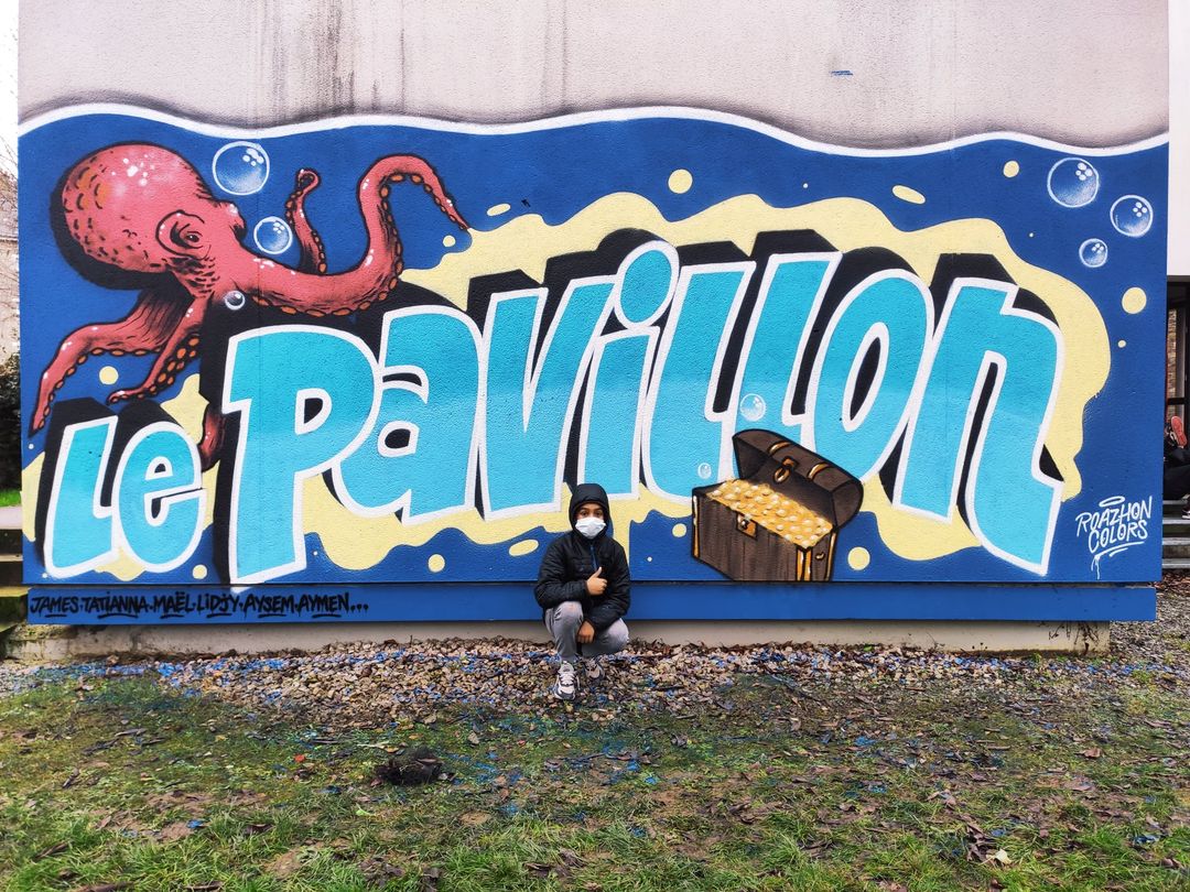 Pendant les vacances de Noël, les jeunes du Pavillon et de Ti Degemer ont pu s’initier à la technique du Street Art en réalisant un graff sur un des murs du foyer.